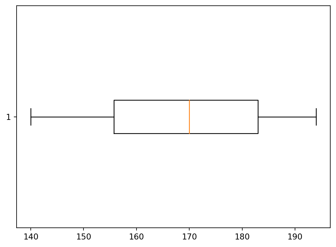 By default, the box plot is vertical. To make it horizontal, use the key vert = False in boxplot method.