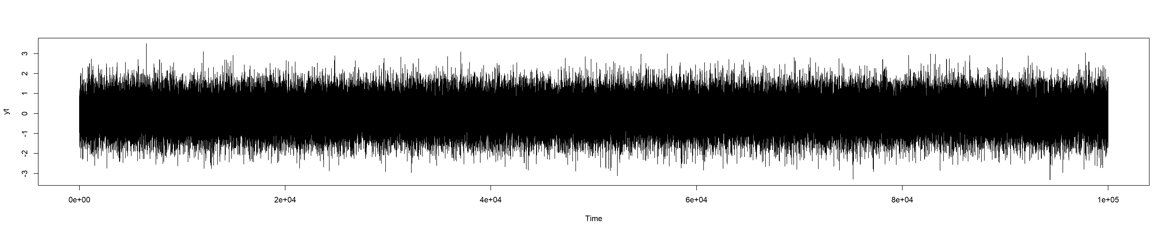 (surely, you need to substitute \(\alpha\)’s, \(\beta\)’s, \(\sigma\) and \(T\) by their values and do not type dots). The output is a ts object, not just a vector.